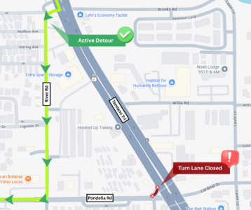 Beginning Friday, Oct. 10, at approximately 8 a.m., the southbound right-turn lane on SR 739 (North Tamiami Trail) onto westbound Pondella Road (78A) will be closed. During this time, motorists are asked to use the posted detour. When traveling southbound on SR 739, motorists will turn ...