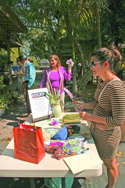 There was ample parking in the lot and along the road for this Saint James City event. Patrons were neighbors and friends who gathered in a jovial atmosphere of relaxation and camaraderie. A table was set up with art supplies consisting of colored yarns, feathers and textures for the creation of a Peace Stick.