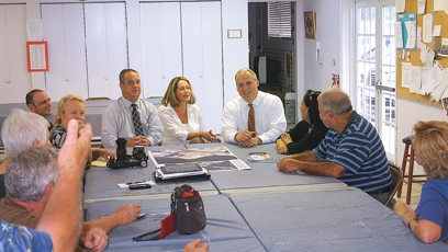 Several Lee County officials met with about a dozen residents of Matlacha about the Bat House Park funding delay last Wednesday at Matlacha Park Arts building.