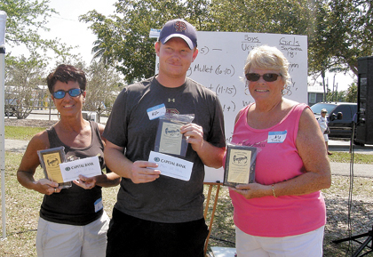 In the Fry Division (ages 1 to 5), the winner of the girl’s toss was Aubrey Smith of St. James City, who threw for 18 feet. In the boy’s toss Uriyah Harness of Cape Coral won with a toss of 19 feet.