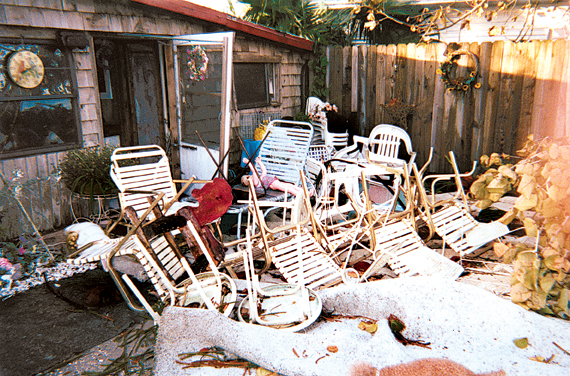 “My parents introduced me to Pine Island they moved here in 1977 and I moved into my new house on Pine Island four days before Hurricane Charley,” Sonny Koutsoutis said. “I drove down here from Baltimore with my three cats and got here Aug. 3rd or 4th and moved into my new house Monday, Aug. 9th. We all knew the hurricane was coming and my friend left the island to stay with her daughter in Winter Haven. I decided to stay, in part because I didn’t want to put my three cats back in the car, but also because I didn’t think they’d let me back onto the island because all of my identification said Baltimore, Md. So I stuck it out and on Friday about 2:45 the electricity went off along with the water and then the winds started.