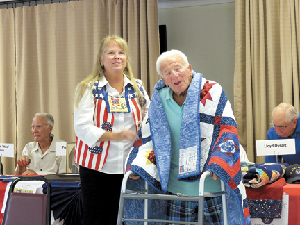 The second quilt was presented to U.S. Army Air Corps Sgt. Lloyd Dysart. He was stationed in the Pacific islands to facilitate communications among various bases throughout the area and among aircraft transitioning the vast areas of the Pacific Ocean.