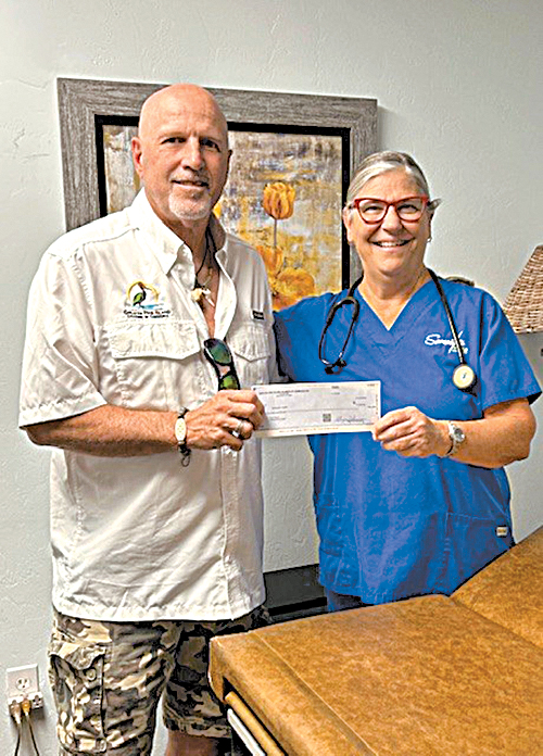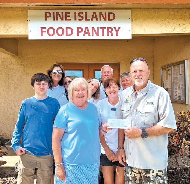 Thanks to generous donations made at Mango-Mania, Dave Conner, president Greater Pine Island Chamber of Commerce, was able to present checks to Pine Island Food Pantry and Samaritan Health.