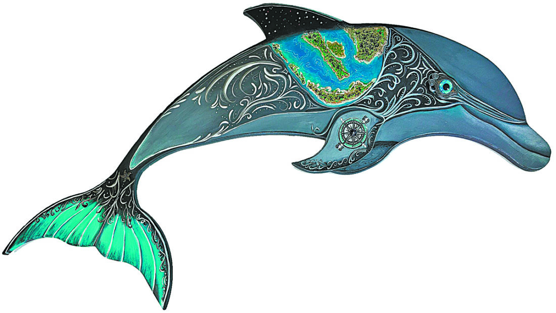 The chamber thanks the 20 island businesses that have sponsored wall sculptures. Each business sponsored a blank template of the dolphin and then organized a local artist to produce the masterpiece.