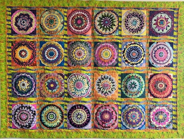 “In the early 80s, Massey spent several weeks with the late Lenore Davis, a renowned fiber artist, and Jason Pollen, an internationally acclaimed artist, designer and educator, at Penland School of Crafts in North Carolina. The two served as her instructors and taught her the ins and outs of the art of dyeing and manipulating fabric. While continuing to better her craft, Massey still actively pursued creating her own art, including bed quilts for her children and a line of quilted jackets and vests, which were sold in boutiques in Santa Monica, Las Vegas, and Santa Fe. The majority of Massey’s non-traditional fiber creations are designed to hang on walls or to be worn.