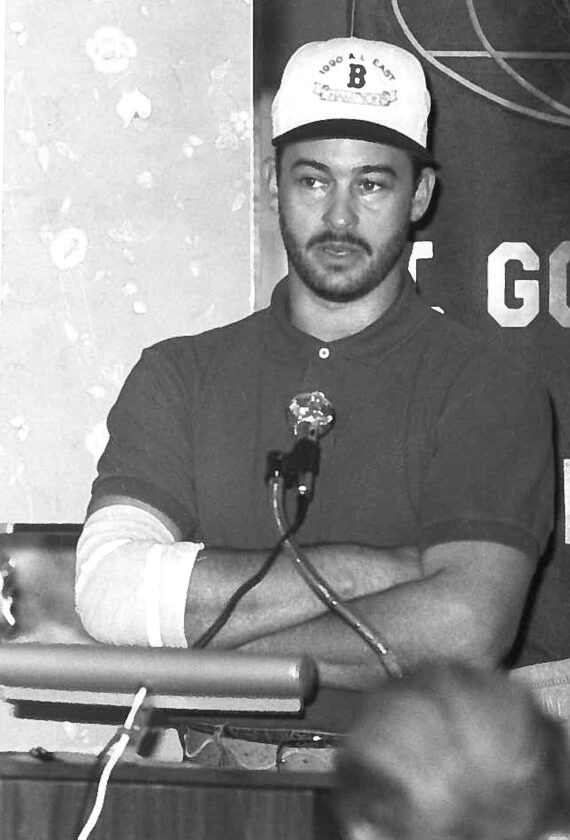 Mike Greenwell speaks to the Kiwanis Club North in December 1991. He was talking about his plans for Greenwell's Batting and Family Fun Park to be built on Pine Island Road in Cape Coral. Greenwell's Bat-A-Ball and Family Fun Park, now under new ownership as Gator Mike's Family Fun Park, opened in 1992.