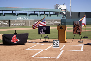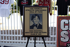 Along the stadium corridors, North Fort Myers High School and Red Sox sports memorabilia lined several fences. In the collection of photographs on display, Mike Greenwell’s smile appeared big and bright — much like the legacy he leaves behind with wife Tracy, their sons and grandchildren here in Lee County and beyond.