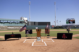 The Honor Guard prepares to present colors ahead of Mike Greenwell’s Celebration of Life Saturday at JetBlue Park. Photo y CASEY BRADLEY GENT