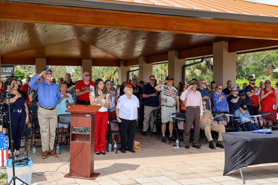 The ceremony attendees acknowledge the mayor of Punta Gorda, Dr. Deborah Lux, US Navy veteran and her husband, Judge Sean Lux, US Air Force veteran, as being founding members of the Collier-Lee Honor Flight program. MARK CLIFFORD