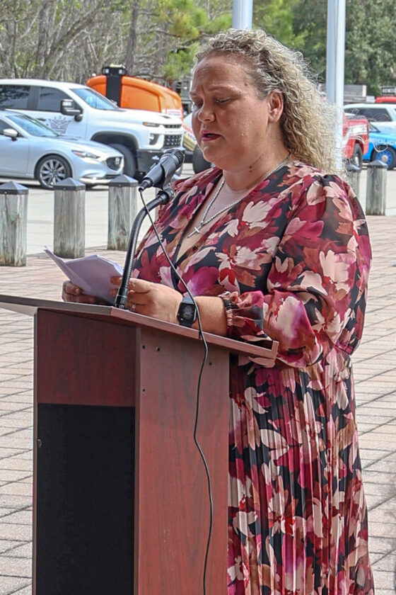 Lee County Sheriff’s Department Lieutenant Angelo Vaughn and USMC veteran CPL E4, Master of Ceremonies Alexis Giambrone, and Marine Corps League Sr. Vice Commandant Matthew Giambrone, USMC LCPL E3 and Iraqi Freedom War veteran. MARK CLIFFORD