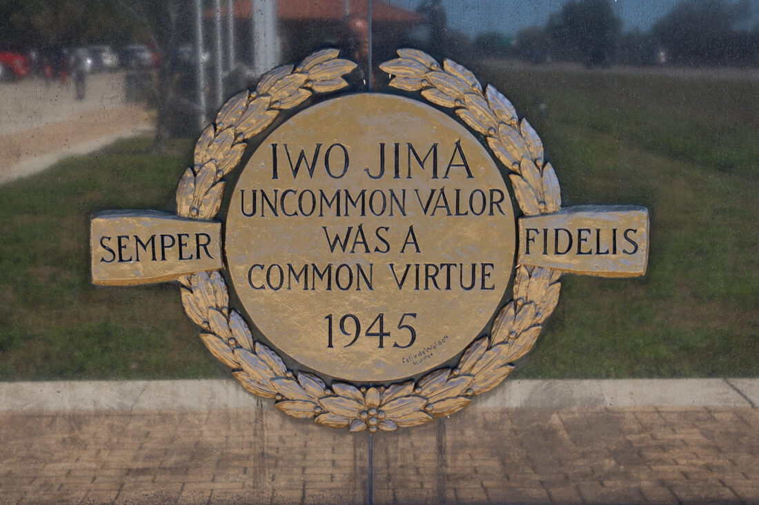 Inscribed on the Iwo Jima Memorial is the famous quote by US Navy Admiral Chester Nimitz describing the heroism displayed by US Navy and US Marine Corps forces fighting at the battle of Iwo Jima. MARK CLIFFORD