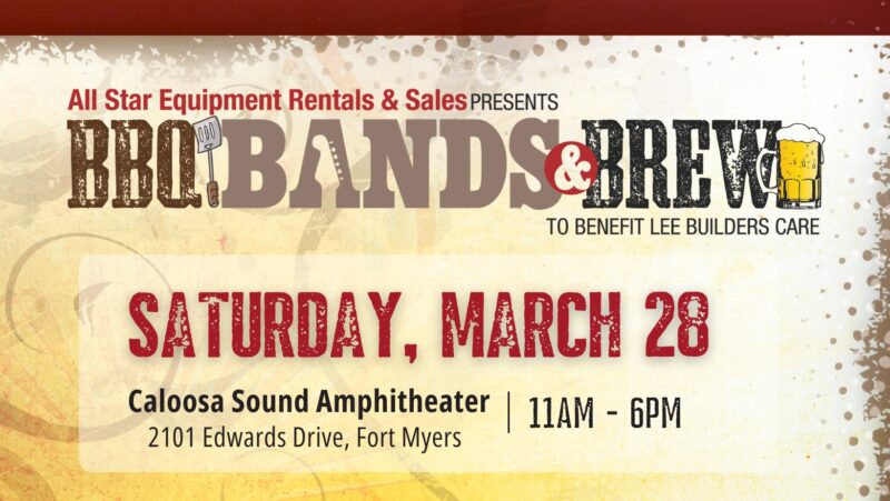 Lee BIA Builders Care’s popular BBQ, Bands & Brew fundraising event is returning Saturday, March 28, from 11 a.m. to 6 p.m., at Caloosa Sound Amphitheater in downtown Fort Myers.