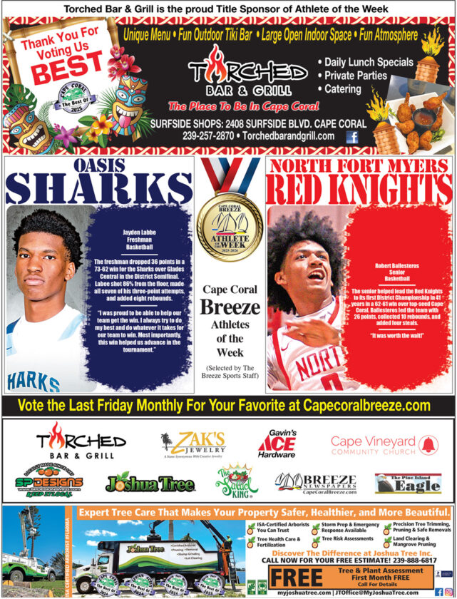 Athletes of the Week — Oasis Shark JAYDEN LABBE & North Fort Myers Red Knight ROBERT BALLESTEROS