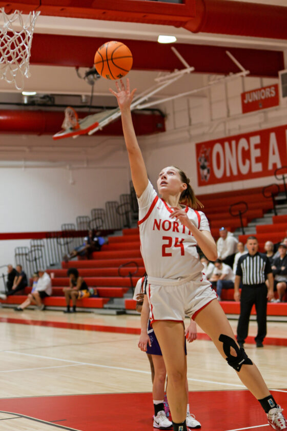 Red Knight center Tayden Logbeck gets behind the Panther defense and lays the ball in for two points. MARK CLIFFORD