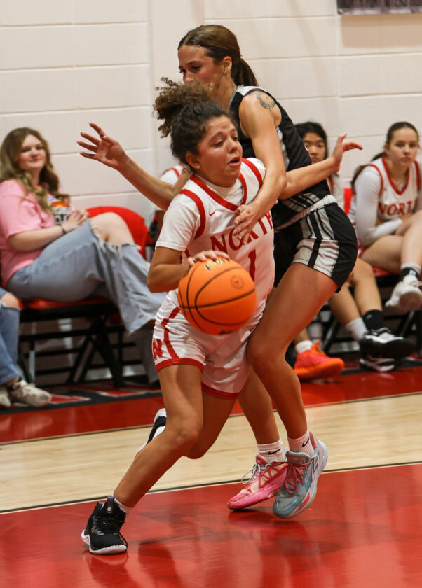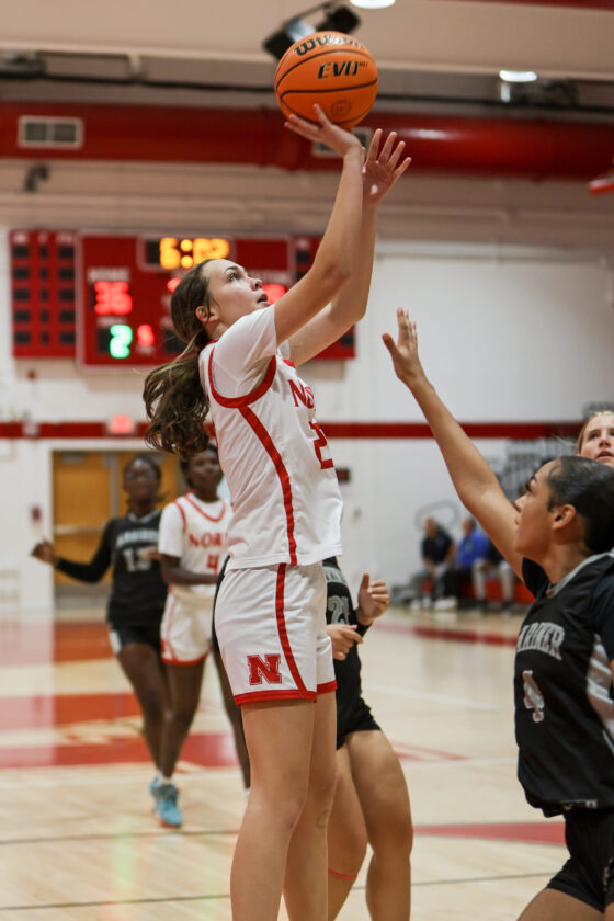 North Fort Myers forward Lily Erickson shoots the off-balance shot over Panther defender Amor Ramirez. MARK CLIFFORD